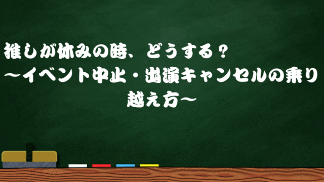 イベント考察 推しが休みの時、どうする?~イベント中止・出演キャンセルの乗り越え方~ 2025年9月24日 一番先生 https://sakonnu.com/01/wp-content/uploads/2023/10/a4892452ff15da11803b7663c7709e51.png 一番先生のヲタ芸 ブログ