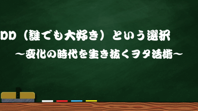 ヲタク考察 DD(誰でも大好き)という選択 ~変化の時代を生き抜くヲタ活術~ 2025年9月24日 一番先生 https://sakonnu.com/01/wp-content/uploads/2023/10/a4892452ff15da11803b7663c7709e51.png 一番先生のヲタ芸 ブログ