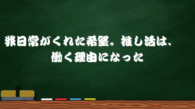 ヲタク考察 非日常がくれた希望。推し活は、働く理由になった 2025年9月24日 一番先生 https://sakonnu.com/01/wp-content/uploads/2023/10/a4892452ff15da11803b7663c7709e51.png 一番先生のヲタ芸 ブログ