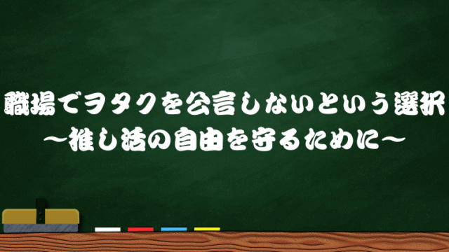 Uncategorized 職場でヲタクを公言しないという選択 ~推し活の自由を守るために~ 2025年9月24日 一番先生 https://sakonnu.com/01/wp-content/uploads/2023/10/a4892452ff15da11803b7663c7709e51.png 一番先生のヲタ芸 ブログ