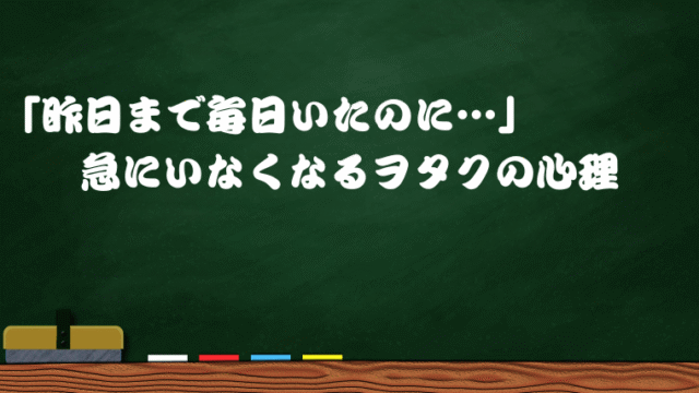 ヲタク考察 「昨日まで毎日いたのに…」急にいなくなるヲタクの心理 2025年9月24日 一番先生 https://sakonnu.com/01/wp-content/uploads/2023/10/a4892452ff15da11803b7663c7709e51.png 一番先生のヲタ芸 ブログ