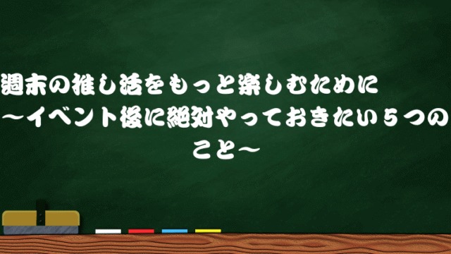 イベント考察 週末の推し活をもっと楽しむために~イベント後に絶対やっておきたい5つのこと~ 2025年11月14日 一番先生 https://sakonnu.com/01/wp-content/uploads/2023/10/a4892452ff15da11803b7663c7709e51.png 一番先生のヲタ芸 ブログ