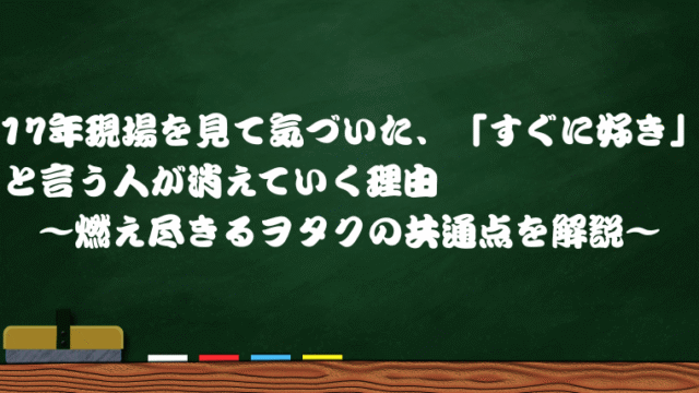 ヲタク考察 17年現場を見て気づいた、「すぐに好き」と言う人が消えていく理由~燃え尽きるヲタクの共通点を解説~ 2025年11月17日 一番先生 https://sakonnu.com/01/wp-content/uploads/2023/10/a4892452ff15da11803b7663c7709e51.png 一番先生のヲタ芸 ブログ