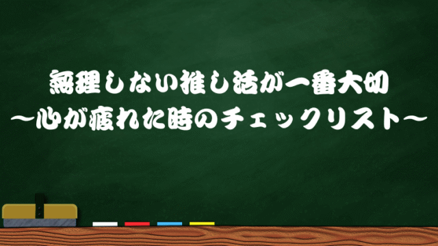 ヲタク考察 無理しない推し活が一番大切~心が疲れた時のチェックリスト~ 2025年11月19日 一番先生 https://sakonnu.com/01/wp-content/uploads/2023/10/a4892452ff15da11803b7663c7709e51.png 一番先生のヲタ芸 ブログ