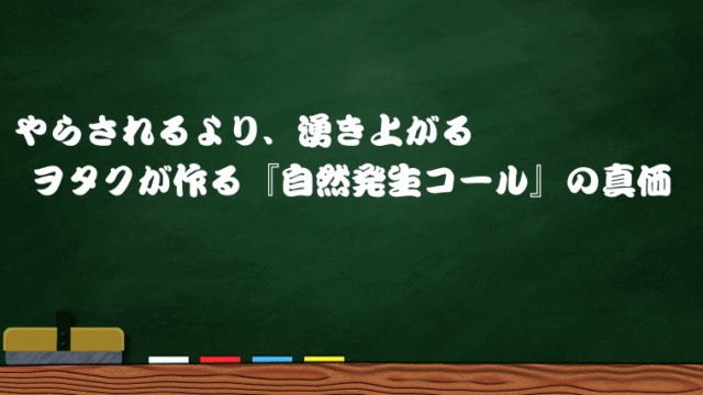ヲタク考察 やらされるより、湧き上がる~ヲタクが作る『自然発生コール』の真価~ 2025年11月14日 一番先生 https://sakonnu.com/01/wp-content/uploads/2023/10/a4892452ff15da11803b7663c7709e51.png 一番先生のヲタ芸 ブログ