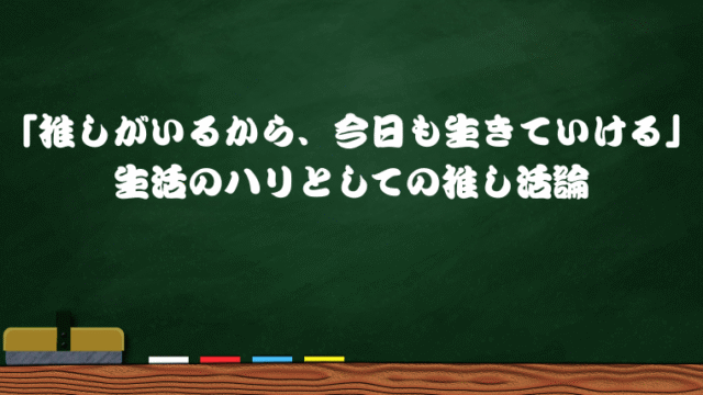 ヲタク考察 「推しがいるから、今日も生きていける」 生活のハリとしての推し活論 2025年11月14日 一番先生 https://sakonnu.com/01/wp-content/uploads/2023/10/a4892452ff15da11803b7663c7709e51.png 一番先生のヲタ芸 ブログ