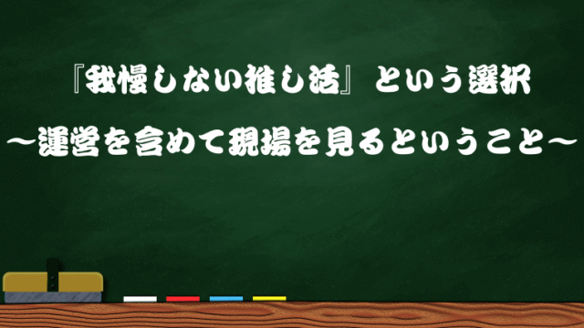 イベント考察 『我慢しない推し活』という選択~運営を含めて現場を見るということ~ 2026年1月26日 一番先生 https://sakonnu.com/01/wp-content/uploads/2023/10/a4892452ff15da11803b7663c7709e51.png 一番先生のヲタ芸 ブログ