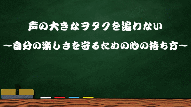 ヲタク考察 声の大きなヲタクを追わない~自分の楽しさを守るための心の持ち方~ 2026年1月26日 一番先生 https://sakonnu.com/01/wp-content/uploads/2023/10/a4892452ff15da11803b7663c7709e51.png 一番先生のヲタ芸 ブログ