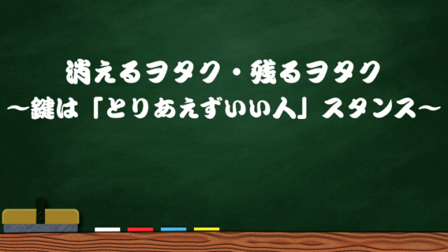 ヲタク考察 消えるヲタク・残るヲタク ~鍵は「とりあえずいい人」スタンス~ 2026年1月4日 一番先生 https://sakonnu.com/01/wp-content/uploads/2023/10/a4892452ff15da11803b7663c7709e51.png 一番先生のヲタ芸 ブログ