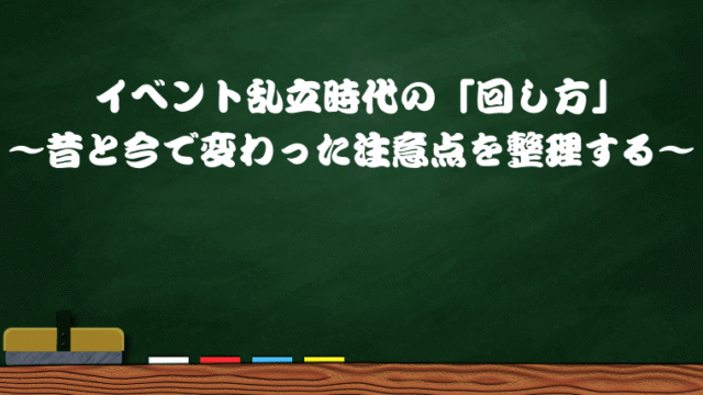 イベント考察 イベント乱立時代の「回し方」~昔と今で変わった注意点を整理する~ 2026年1月26日 一番先生 https://sakonnu.com/01/wp-content/uploads/2023/10/a4892452ff15da11803b7663c7709e51.png 一番先生のヲタ芸 ブログ