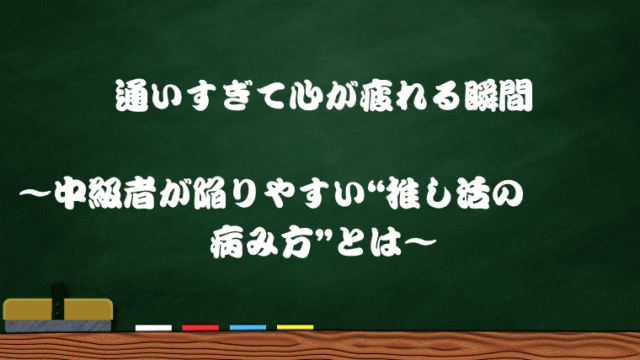 ヲタク考察 通いすぎて心が疲れる瞬間 ~ 中級者が陥りやすい“推し活の病み方”とは~ 2026年1月4日 一番先生 https://sakonnu.com/01/wp-content/uploads/2023/10/a4892452ff15da11803b7663c7709e51.png 一番先生のヲタ芸 ブログ